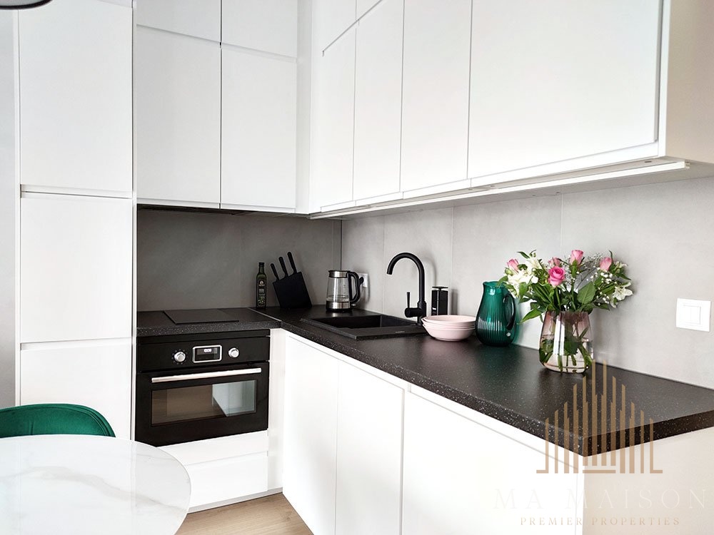 Byt se pronajímá plně vybavený. Kuchyň je moderně zařízená spotřebiči, včetně myčky, varné desky, kombinované a horkovzdušné trouby, digestoře a lednice. K dispozici je i základní nádobí. Ve spací části najdete výsuvnou postel, velkou zrcadlovou skříň a pracovní stůl. Další šatní skříň na míru je umístěna v předsíni. Koupelna je vybavena sprchovým koutem, WC, umyvadlem, skříňkami a pračkou se sušičkou (2v1).
