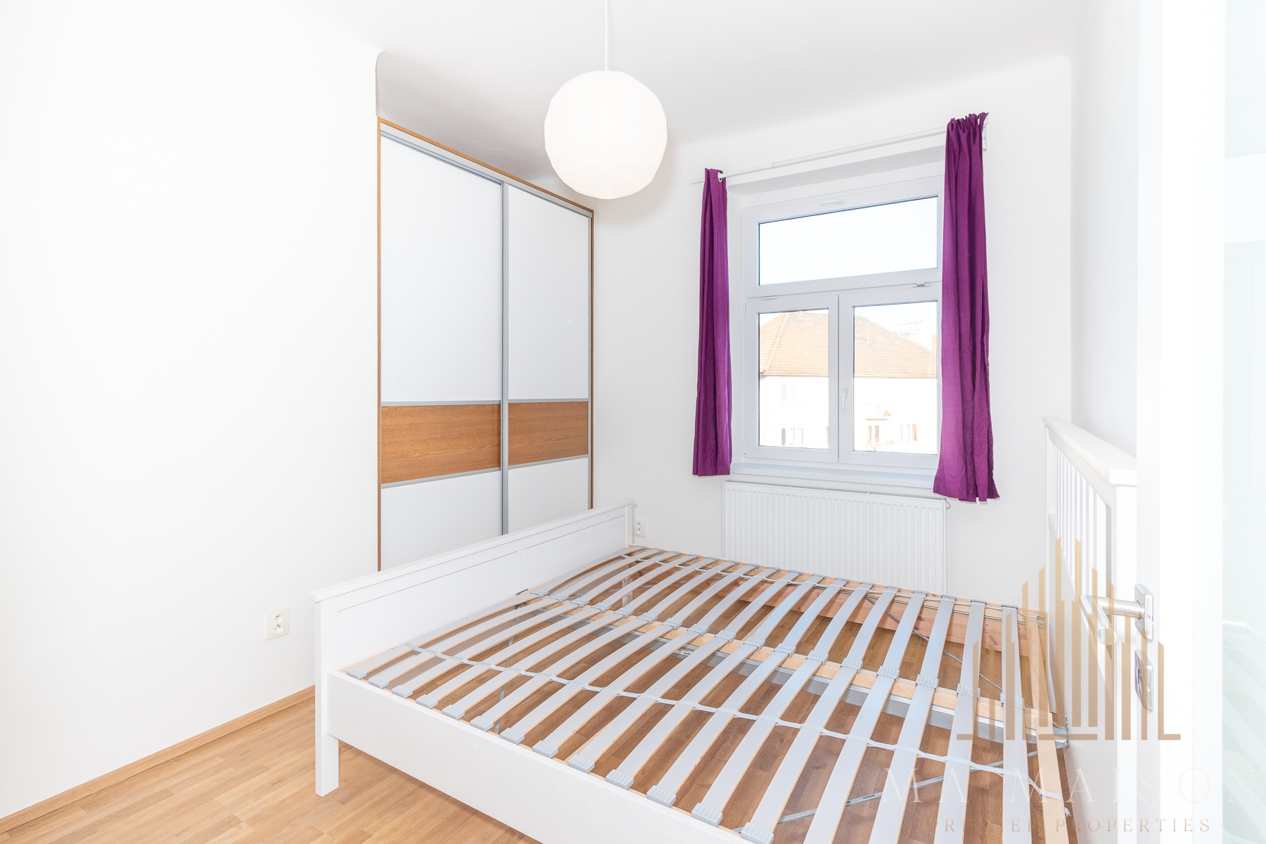 Byt se pronajímá částečně vybavený a skládá se z prostorného obývacího pokoje s kuchyňským koutem, který je vybaven spotřebiči, jako je trouba, varná deska, digestoř, mikrovlnná trouba, lednice a pračka. Samostatná ložnice je vybavena vestavěnou skříní a menší šatnou, postel je součástí vybavení (bez matrace). Vytápění el. kotlem.