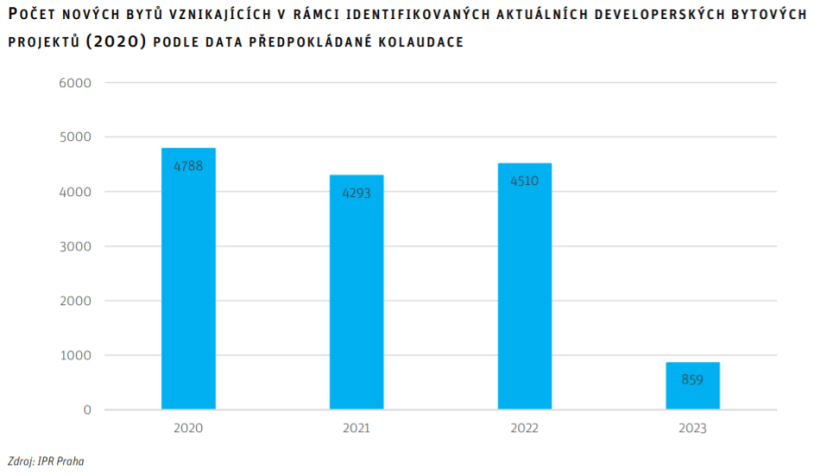 V posledních dvou letech nabídka bytů v Praze poprvé stoupla. Institut plánování a rozvoje hlavního města Prahy ve své každoroční analýze uvádí, že v roce 2019 došlo poprvé k nárůstu počtu volných bytů na trhu, a vzrůstající tendence se udržela i v roce 2020. Predikce pro následující roky je dále znázorněna na grafu IPR níže.