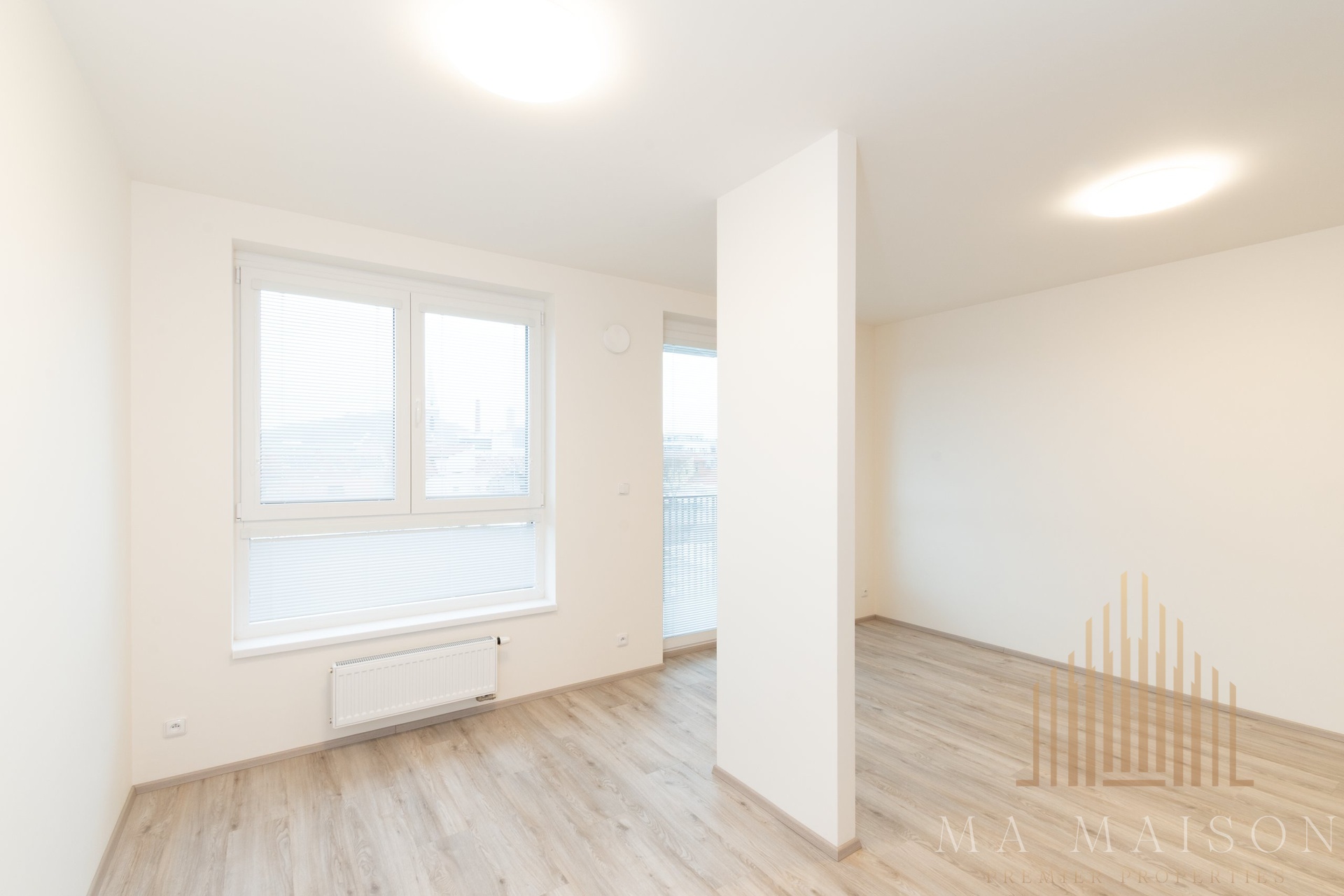 Byt je dispozičně velmi prakticky řešen. V předsíni se nachází šatní skříň. Koupelna je vybavena vanou, umyvadlem se zrcadlem a WC. Hlavní obytný prostor s kuchyňským koutem nabízí moderní kuchyňskou linku se všemi spotřebiči – sporákem, troubou, digestoří, myčkou a lednicí s mrazákem.
