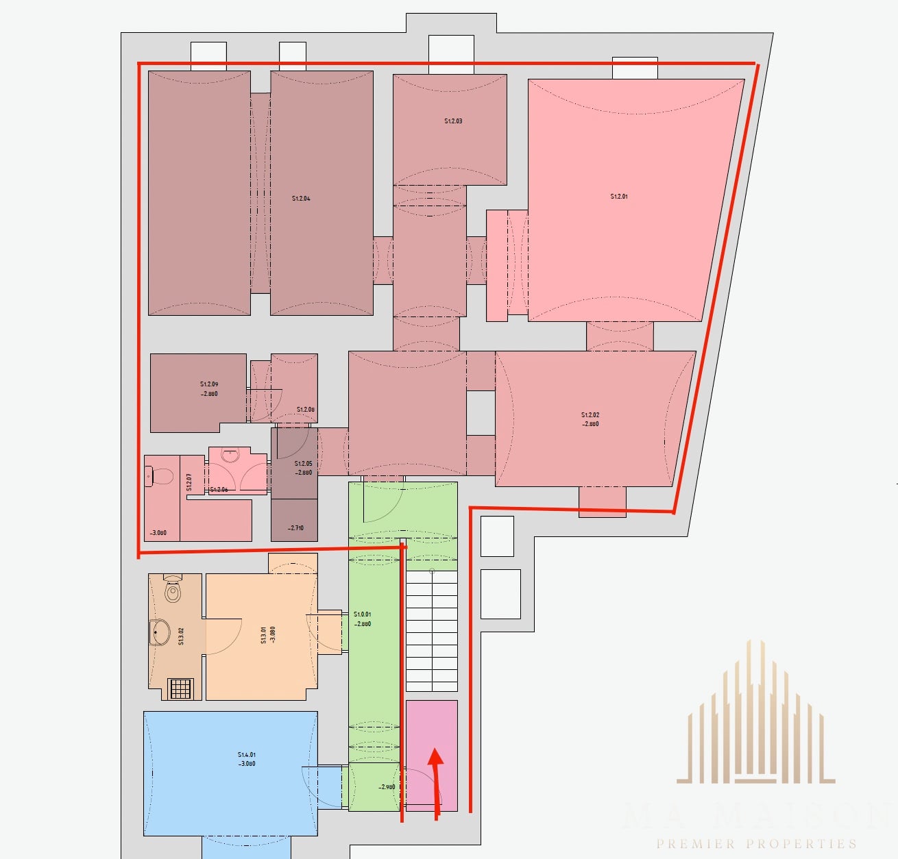 Tento prostor se nachází v prvním podzemním podlaží a je ve stavu shell&core. Díky tomu nabízí neomezený potenciál pro vaše podnikání. Prostor je členěn do několika místností o celkové podlahové ploše 105 m² - viz půdorys. Do prostoru je zavedena plynová přípojka. Systém vytápění je čistě na vaší volbě - všechny možnosti jsou přijatelné (plynový kotel, elektrokotel, přímotopy, tepelné čerpadlo a pod). Je zde rovněž příprava na vzduchotechniku a zajištěn přísun čerstvého vzduchu. Na adrese je možnost zřízení sídla společnosti.